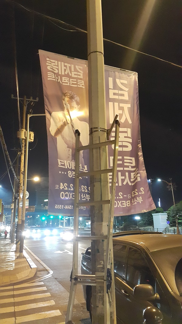 김제동 콘서트 가로등배너 페이지 정보 작성자 우정엔터테인먼트 댓글 0건 조회 1,486회 작성일 18-06-20 13:24 본문 김제동 콘서트 게릴라 현수막 및 가로등배너 요청이 들어와서 진행하였습니다.아파트 출입구 , 교차로 등은 현수막 시공 및 탈부착 진행하였기 때문에배너는 메인도로 위주로 시공 하였습니다. 목록 답변 이전글이승환 콘서트 배너 18.06.20 다음글장사익 콘서트 가로등배너 18.06.20 댓글목록 댓글목록 등록된 댓글이 없습니다.